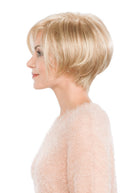 A modern wedge with a beveled nape and layered, sweeping bangs. Ready-to-wear lace front with a harp cap.