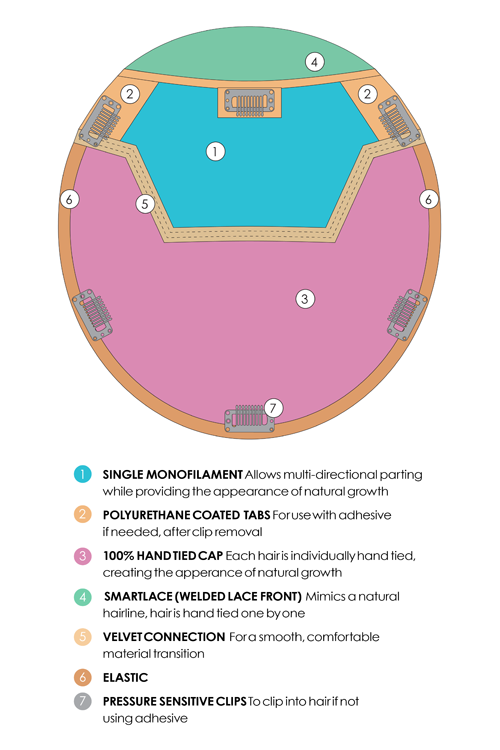 Base Construction: Lace Front / Single Monofilament/Hand Tied