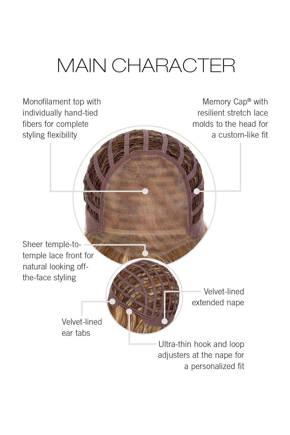 Features: Temple-To-Temple Lace Front, Monofilament Top, Memory Cap, Velvet-Lined Ear Tabs, Velvet-Lined Extended Nape, Tru2Life Heat-friendly Synthetic Hair