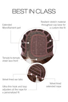 Features: Temple-To-Temple Lace Front, Extended Monofilament Part, Velvet-Lined Ear Tabs, Velvet-Lined, Extended Nape, Tru2Life Heat-friendly Synthetic Hair